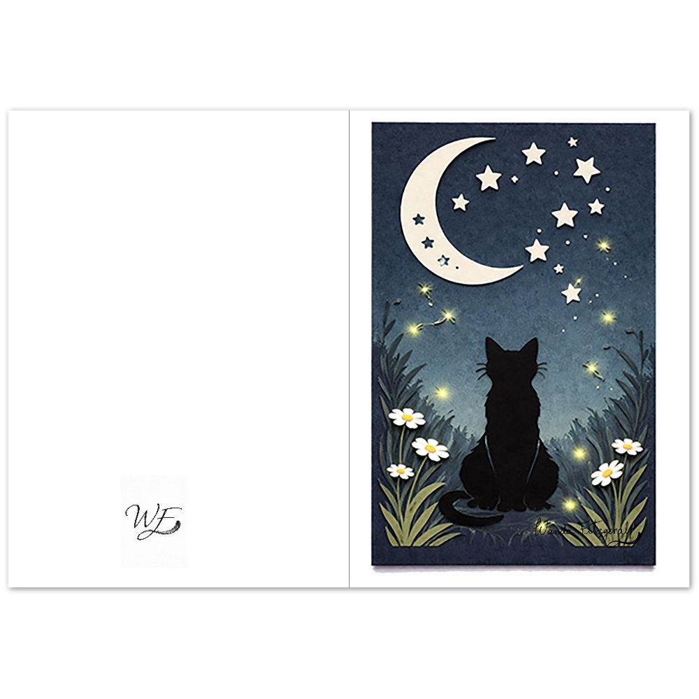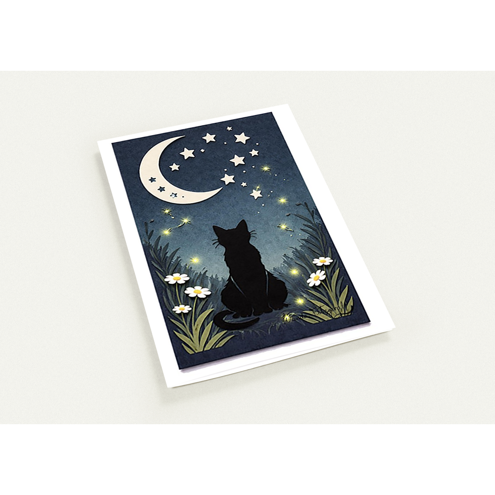 Summer - Moon Watcher Cat Art Cards Eco-Friendly, Premium Quality, Pack of 10