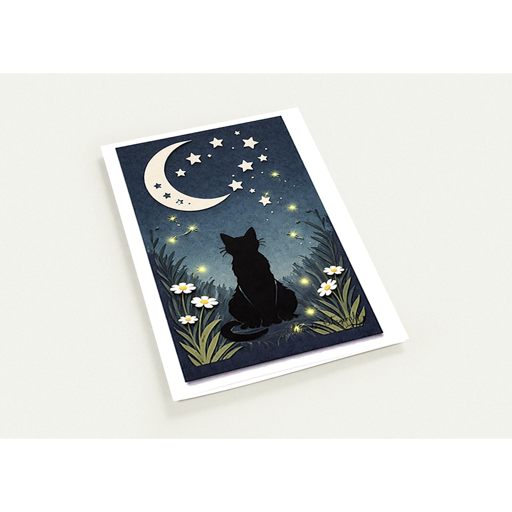 Capture the beauty of Summer with our Moon Watcher Cat Art Cards, featuring a charming cat nestled among daisies under the enchanting moon and starry sky. Perfect for any occasion, these personalized folded greeting cards come in a pack of 10, allowing you to share heartfelt messages with friends and family. Choose from premium paper options, including glossy coated silk for vibrant imagery or sophisticated matte for elegant text. Each card is made from high-quality, eco-friendly paper, ensuring sustainability while conveying your sentiments. Stylish rounded corners and the option for luxurious foil accents in gold, silver, or copper add a distinctive touch. Whether you need no envelope, a standard option, or a premium choice, these cards will elevate your greetings to a new level. Order now to spread joy with our exquisite art cards!